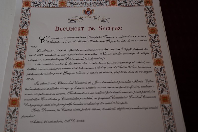 Sâmbătă, 21 octombrie, mulţime de credincioşi din localitatea Nicopole, judeţul Galaţi, au trăit momente de o profundă simţire duhovnicească prin participarea la sfinţirea bisericii parohiale cu hramul „Sf. Arhidiacon Ştefan”. După cum am aflat de la părintele Rareș Bucur, această biserică l-a primit ca ocrotitor ceresc şi pe Sfântul şi Dreptul Lazăr.