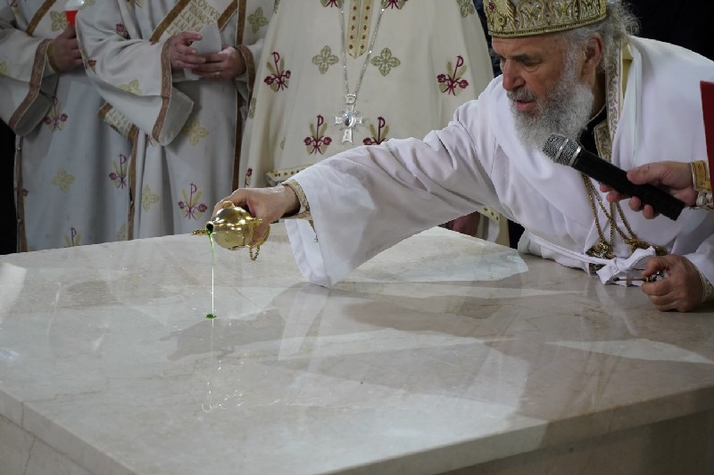 ”Slujba de sfinţire a fost săvârşită de Înaltpreasfinţitul Părinte Casian, Arhiepiscopul Dunării de Jos, în prezenţa ctitorilor, autorităţilor locale, a unor cadre medicale şi profesori de la Facultatea de Medicină şi Farmacie din Galaţi, precum şi a numeroşi credincioşi din parohie şi din satele învecinate. Bucuria celor prezenţi la sărbătoarea acestei parohii a sporit la momentul trecerii tuturor prin Sfântul Altar pentru a săruta Sfânta Evanghelie, Sfânta Cruce şi Sfânta Masă şi pentru a primi arhiereasca binecuvântare. În continuare, ierarhul locului, împreună cu un sobor de preoţi şi diaconi, a săvârşit slujba Sfintei Liturghii pe un podium special amenajat în curtea bisericii, în prezenţa credincioşilor.