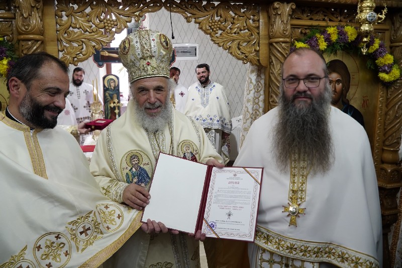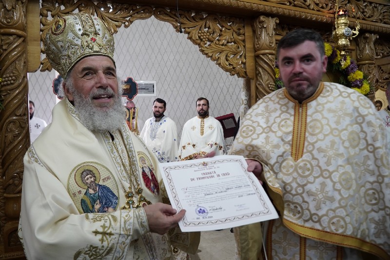 În continuare, ierarhul locului a oferit distincţia ”Crucea Sfântului Apostol Andrei” pentru clerici, clasa a II-a, preacuviosului părinte arhimandrit David Petrovici, fiul al satului şi stareţ al Mănăstirii Caraiman, judeţul Prahova. Pentru implicarea în lucrările de amenajare a lăcaşului de cult, ierarhul a acordat preotului paroh George Daniel Doroșin rangul de iconom, iar cei care au sprijinit aceste lucrări au primit Diplome de ctitor.