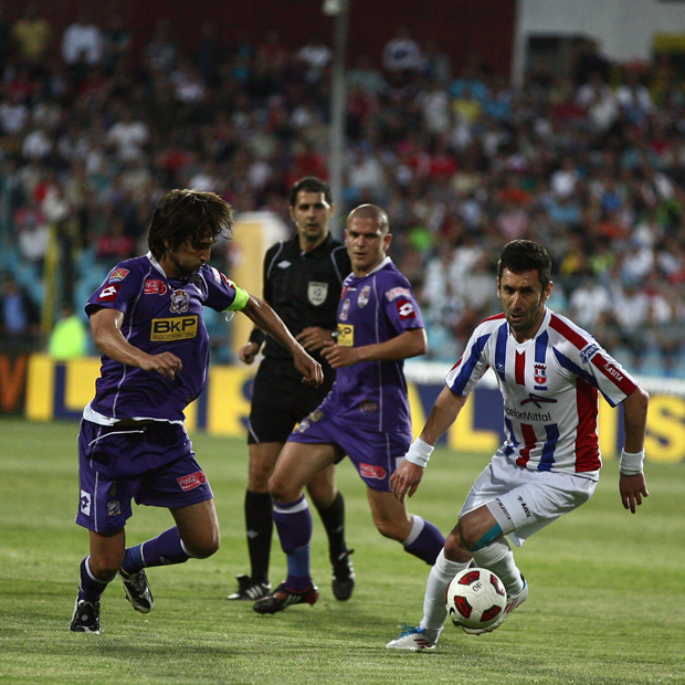 Paraschiv (dreapta) şi timişoreanul Alexa, în duelul duelurilor care a uns Oţelul drept regina fotbalului românesc