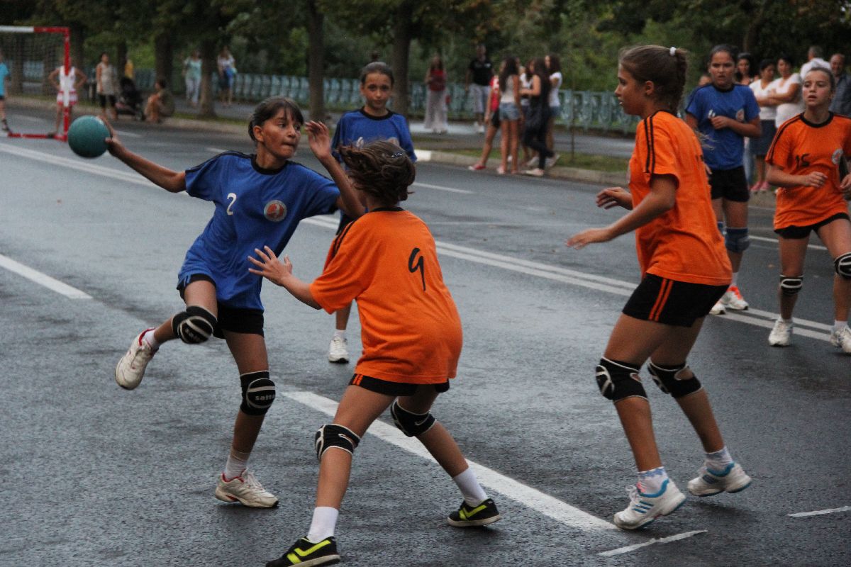 Iniţiativa municipalitaţii de a încuraja practicarea sportului prin închiderea traficului rutier pe Faleza Superioară în weekend şi a rezerva astfel zona pentru doritorii de mişcare s-a dovedit inspirată. Pe lângă numeroşii biciclişti şi patinatori pe role care au profitat din plin de oportunitate, sâmbătă au ieşit în stradă şi copiii clubului Handbal Art, care s-au distrat la un antrenament inedit. S-au pus porţi în mijlocul şoşelei, s-au trasat cu cretă semicercurile şi a început joaca micilor handbalişti şi handbaliste antrenaţi de Gabriela Artene, în aplauzele numeroasei asistenţe de pe trotuar. De asemenea, s-a jucat şi baschet “trei la trei”, între echipe formate din juniorii clubului Phoenix dar şi din amatori, iubitori ai acestui sport.