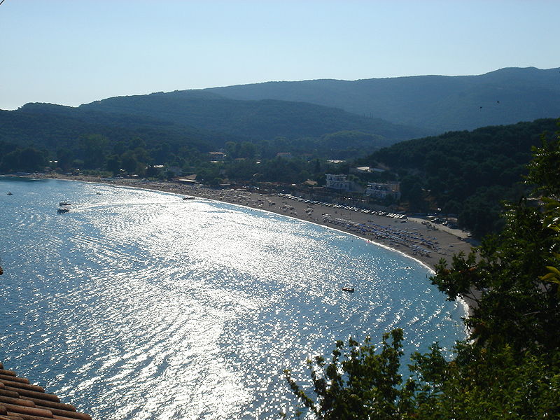 Plaja Valtos este situată în imediata vecinătate a orașului (aproximativ 1,3 km) și este ideală pentru turiști de toate vârstele. Puteți ajunge aici pe jos (20 de minute), cu taxiul acvatic (5 minute), scuterul sau mașina (2 minute). Plaja are o lungime de aproximativ 1 km și încântă vizitatorii prin apa cristalină și nisipul fin ce invită la relaxare. Plaja este ideală pentru practicarea sporturilor nautice, precum jet skiing, wind surfing, water skiing, scufundări și paragliding. De asemenea, există un centru pentru închirierea de hidrobiciclete și canoe. Datorită numeroaselor facilități pe care le oferă turiștilor, această plajă este deseori foarte aglomerată.