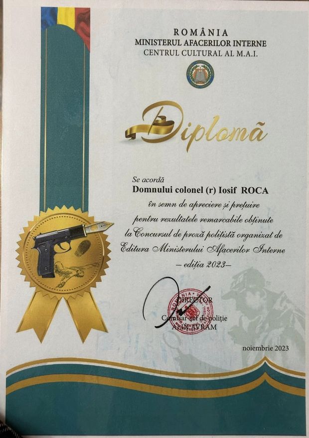 Nu întâmplător, zilele trecute, scriitorul a primit din partea Editurii Ministerului Afacerilor de Interne un premiu special pentru proză polițistă, la un concurs organizat de aceeași instituție!