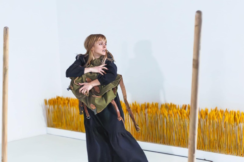 Venirea şi plecarea ei din scenă, domoale, în rochie neagră de doliu, târând o raniţă de soldat, mi-a amintit de scenele zguduitoare la care am fost martoră în 27 februarie 2022, la Isaccea, când bacul cu refugiaţi a ajuns pe malul românesc al Dunării. Era frig umed şi pătrunzător, vânt aspru care şfichiuia fără milă, dar linişte şi pace. „Priveam apusul peste Dunăre și mă gândeam că tare ciudată mai e normalitatea atunci când te obișnuiești cu absența ei...”, a răspuns eroina gândurilor mele.