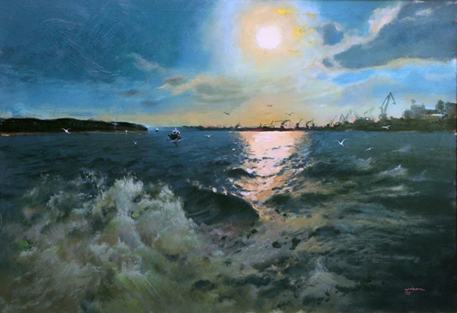 Peisajele din actuala expoziție sunt de pe Dunăre și din portul Galați, surprinse în diferite anotimpuri și în diferite momente ale zilei, în care albastrul apei și al cerului ocupă cea mai mare suprafață a tablourilor („Peisaj la Dunăre I, II”), „Dunărea la Ghecet”, „Cheiul Dunării la amiază”, „Activitate în rada portului”, Peisaj dunărean”), de la Marea Neagră („Peisaj marin”, „Nostalgie”), din zone montane („Peisaj de munte”, „Pădure de mesteceni”, „Peisaj de toamnă”, „Prima zăpadă”), din mediul rural („Casa olarului”), din capitala Moldovei („Palatul Culturii din Iași”), dar și din Istanbul - Turcia („Bosfor”, „Galata”, „Peisaj urban oriental”). De obicei, imaginile fixate de artist pe pânză au mari deschideri perspectivale, sunt tonice, culorile își păstrează prospețimea ca atunci când au fost așternute pe suportul pictural. Teodor Vișan este sensibil la variațiile luminii și reușește de fiecare dată să pună în valoare frumusețile și poezia naturii sau specificul elementelor de arhitectură atunci când este vorba de spațiul urban. Peisajele sale emană liniște, relaxează, creează o atmosferă de confort fizic și sufletesc celor care le contemplă. Rareori întâlnim în pânzele sale un cer mai dramatic și culori din registrul întunecat, așa cum se întâmplă în „Activitate în rada portului”.